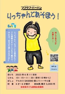 2023年5月23日 / 最終更新日時 : 2023年5月23日 s-kodomo 例会 【4~6歳例会】りっちゃんとあそぼう! カレンダー カレンダーに追加 Timely カレンダーに追加 Google に追加 Outlook に追加 Apple カレンダーに追加 他のカレンダーに追加 XML ファイルとしてエクスポート 日時: 2023年6月11日 @ 10:15 AM – 11:30 AM 2023-06-11T10:15:00+09:00 2023-06-11T11:30:00+09:00 場所: アルカス佐世保第2リハーサル室 三浦町2-3 参加費: 会員無料/会員外:親子1組3,000円 お問い合わせ: 佐世保子ども劇場 0956226747 メール 例会 おなじみの、アフタフ・バーバンのりっちゃんが再び佐世保に来てくれますよ♪ りっちゃんと、なぁ~にも道具がなくても想像力をふくらませて親子で、みんなで、あそびを楽しみませんか? 対象:4歳~6歳(未就学児) Facebooktwitter コメントを残す コメントをキャンセルメールアドレスが公開されることはありません。 ※ が付いている欄は必須項目ですコメント ※ 名前 ※ メール ※ サイト 次回のコメントで使用するためブラウザーに自分の名前、メールアドレス、サイトを保存する。